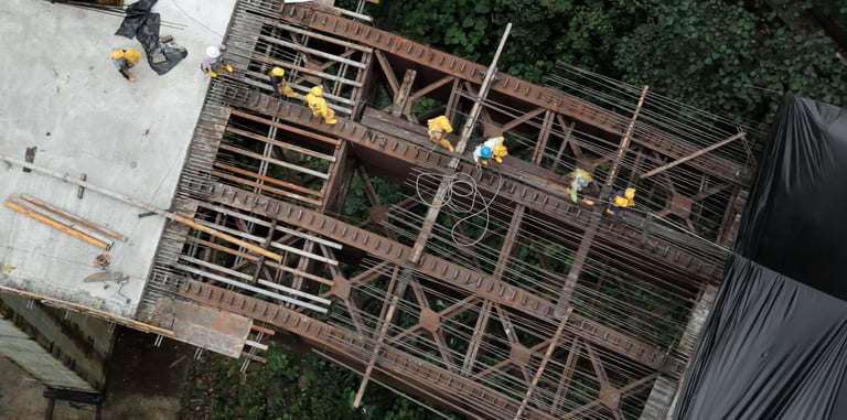Obreros, ingenieros y turistas transitan por el teatro ilusorio de la infraestructura. Todos parecen varados en el tiempo, hasta que ocurre un desastre insospechado.